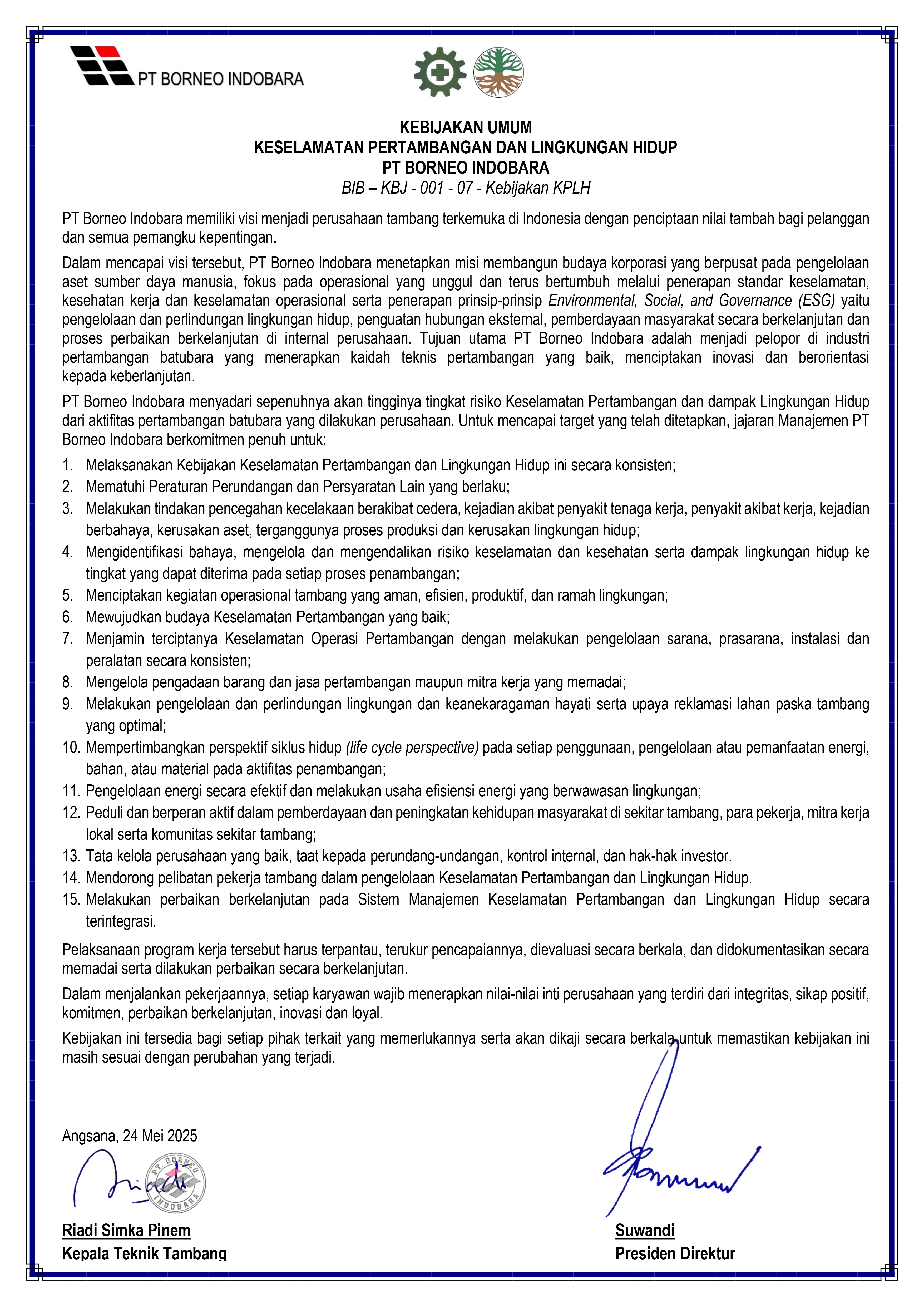 KEBIJAKAN KPLH PT BORNEO INDOBARA